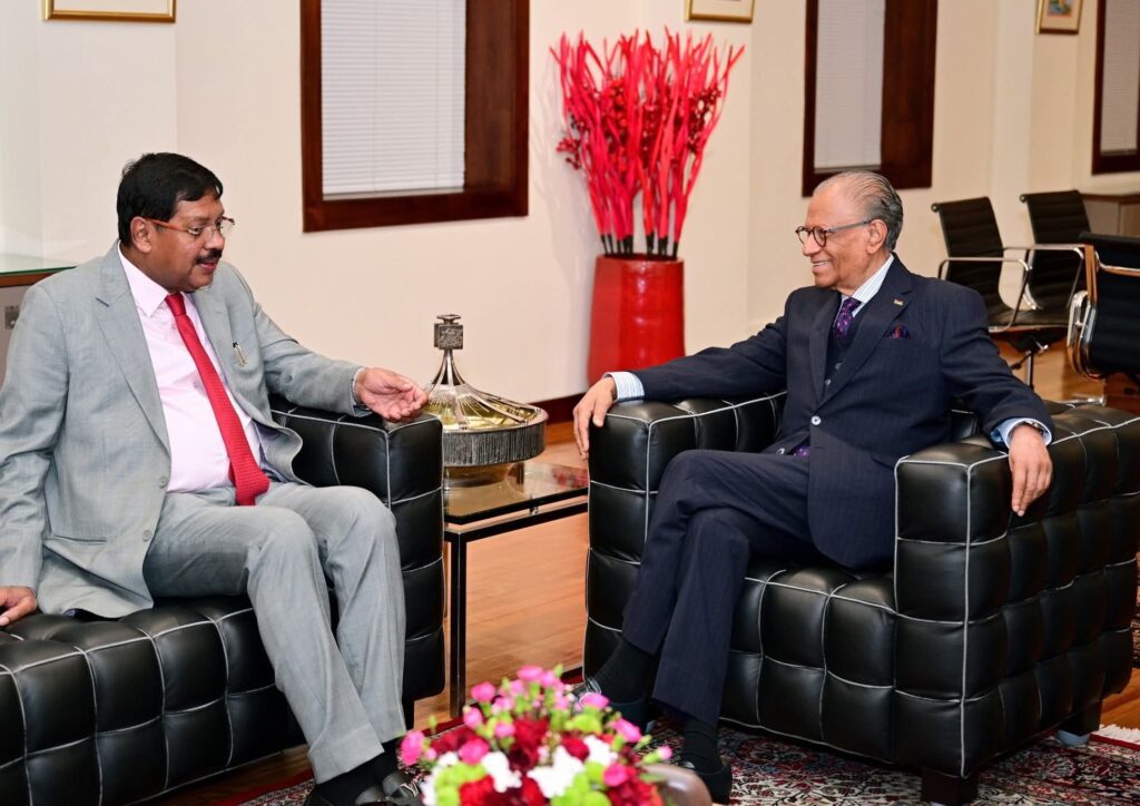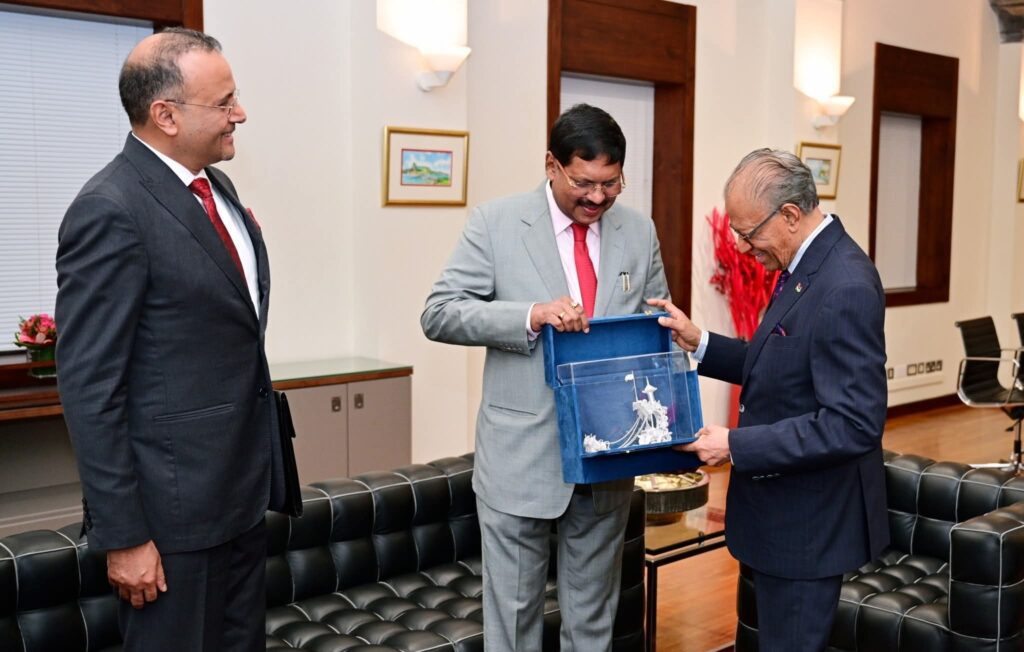 The Chief Justice of India, Shri Bhushan Ramkrishna Gavai, paid a courtesy call, today, on the Prime Minister, Dr Navinchandra Ramgoolam, at the New Treasury Building in Port Louis. The Attorney General, Mr Gavin Glover, and the High Commissioner of India, Shri Anurag Srivastava, were also present.
