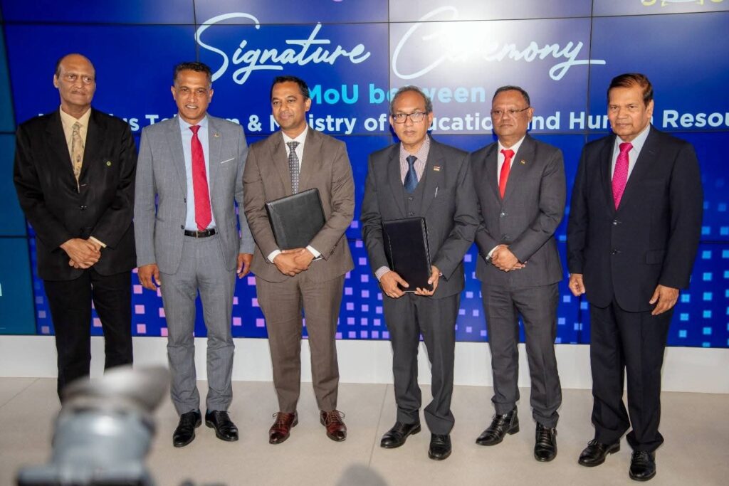 The Minister of Education and Human Resource, Dr Mahend Gungapersad; the Minister of Information Technology, Communication and Innovation, Dr Avinash Ramtohul; and other personalities were present at the signing ceremony.